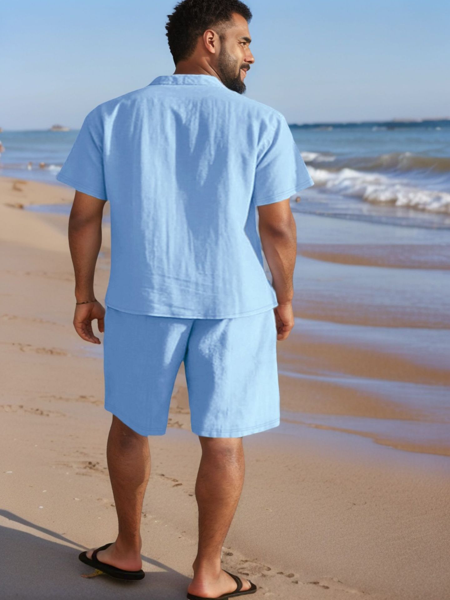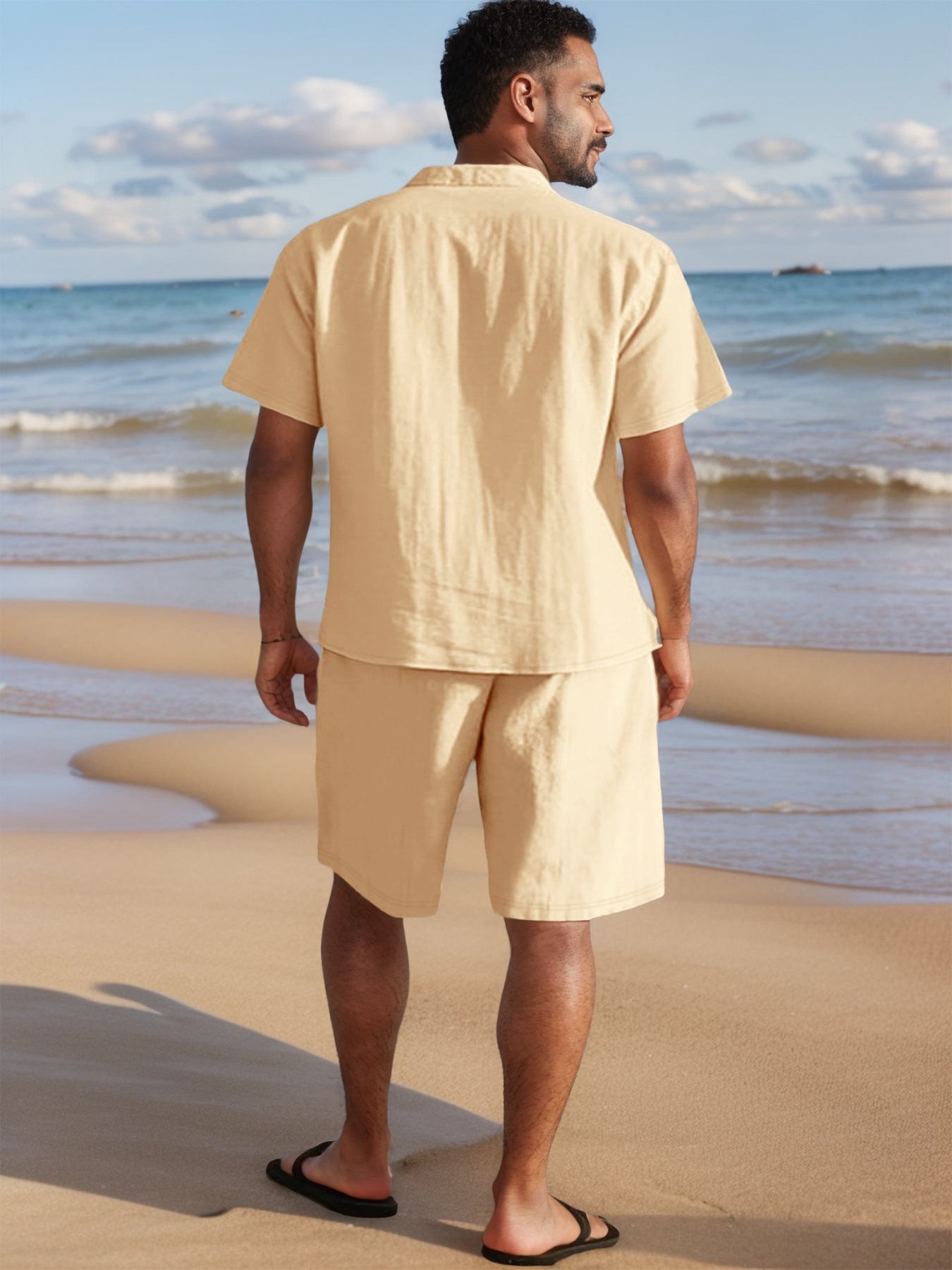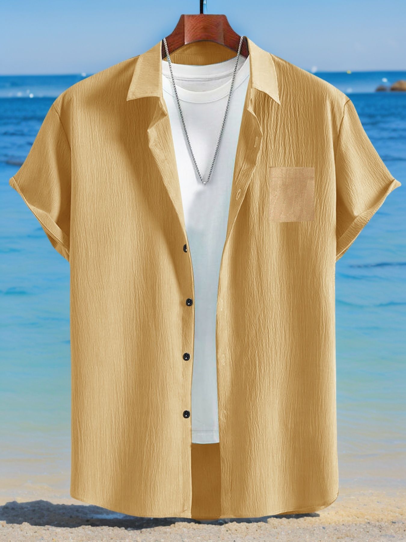 Men's Casual Linen Loose-Fit Button-Up Shirt With Lapel Collar