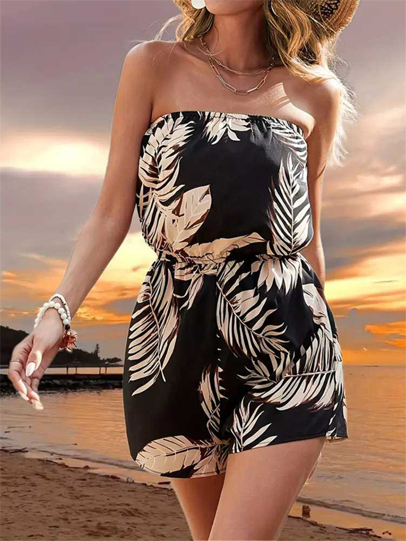 Printed Sexy One-piece Jumpsuit With Open Back And Bare Shoulders