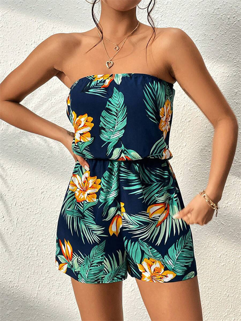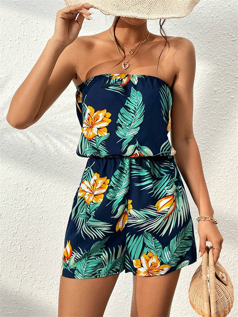 Womens Sleeveless Printed Backless High-Waist Bodycon Jumpsuit